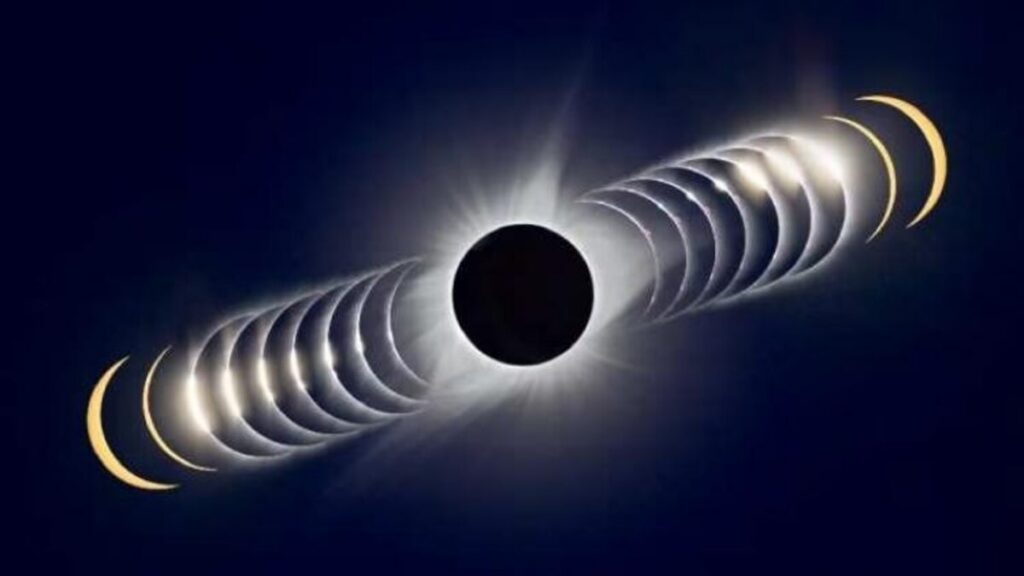 - सूर्य ग्रहण की कुल अवधि: 4 घंटे 25 मिनट