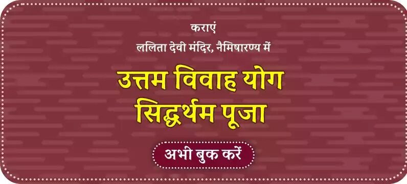 तो आइए, आज ही बुक करें उत्तम विवाह योग सिद्धर्थम पूजा (Uttam Vivah Yog Siddhartham Pooja) और पाएं मां भगवती ललिता देवी का आशीर्वाद।