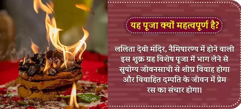 माँ ललिता देवी के मंदिर में इस पूजा को संपन्न करने से वैवाहिक जीवन में खुशहाली आती है।